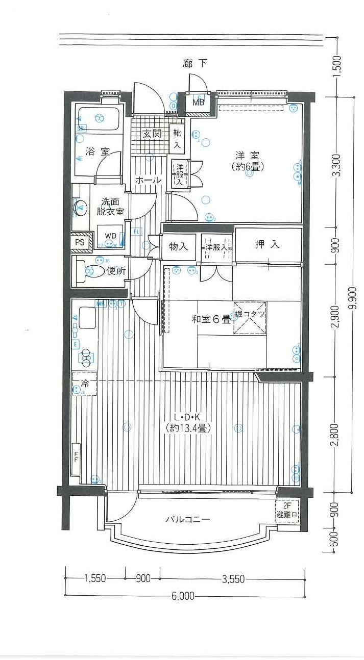 | バルコニー | 6.00㎡ (1.81坪) | その他 | 本下水道完備・インターネット設備あり |