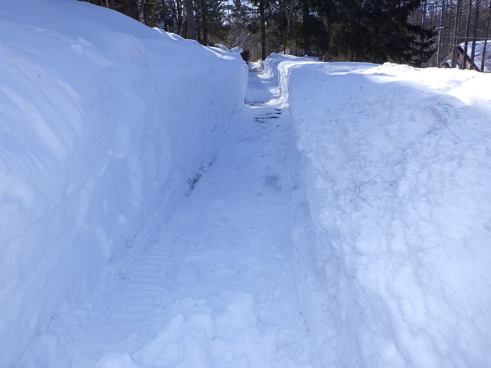 この暖かさで、ロイアルヴィラ蓼科の屋根に積もっていた雪が本日午後落ちました!!