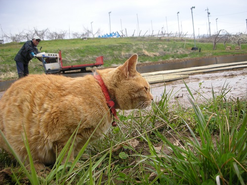 りんご農家周辺では、桜の花が満開になりました。先週種まきしたお米の芽が出ました。次は苗間作りをして今度は田んぼでの管理が始まります。ちーちゃんはりんご畑の見回りプラス苗間の管理もしなければならなりません。毎日大忙し!!
