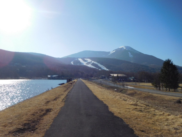 早朝の遊歩道/小川のせせらぎ/咲き始めたザゼンソウ/一列に並んだアヒルボート/朝日に照らされて輝く女神湖/残雪の蓼科山