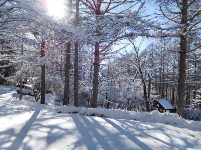 ひぇ~!!!冷え~ 今朝は今シーズン一番の冷え込みで最低気温は氷点下2桁の-11℃でした。14時現在でもプラスにはならず寒いですが、ご来荘されたお客様はこの景色をみて、「きれいですね~」と感激しておられました。