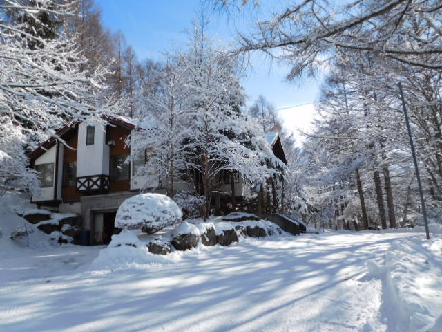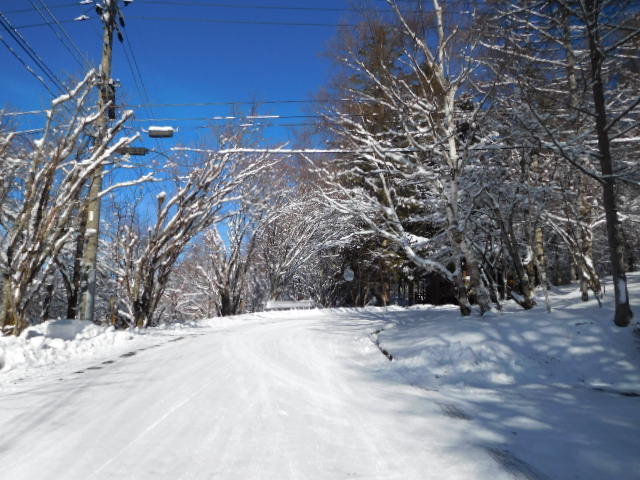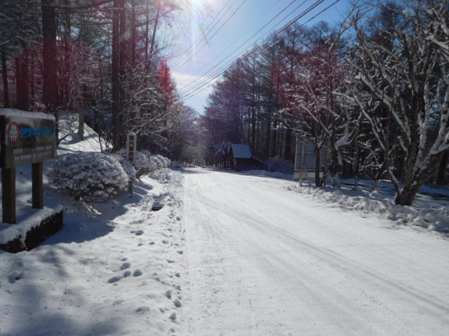 県道・町道(別荘地内)共に圧雪の状況です。お車走行にはお気をつけてください。