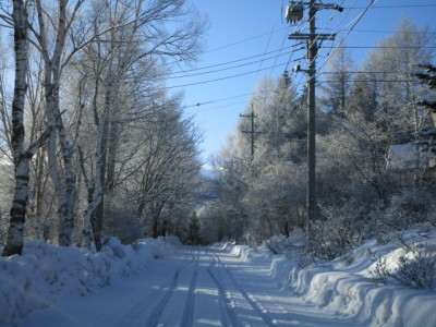 今朝は冷え冷え~です。昨日夕方から舞い始めた雪はふわふわの軽いパウダースノーで、積雪は5㎝強というところでしょうか。有楽別荘地内の路面は凍った雪の上に雪が積もっている状況でとても危険で、スタッドレスタイヤ装着の四駆の車でもハンドルをとられてしまいました。時間と共に気温や状況は変わってきますので、こちらにお越しの際は、念のためチェーンをお持ちいただくと、ご安心かと思います。