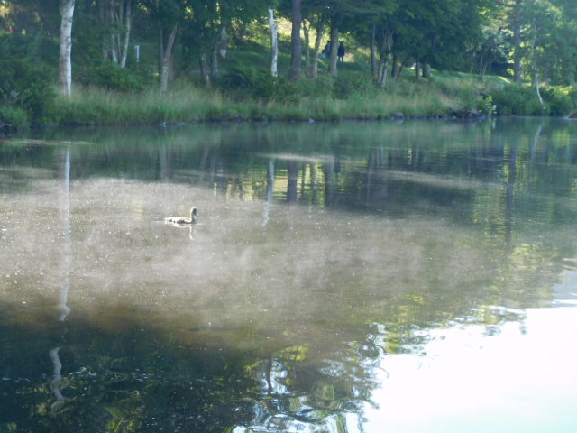 7月最終日となりました。昨日はカムチャッカ半島での地震により津波警報が発し、また不安な一日になりました。天災に対しては本当に無力だと改めて実感しました。そんな思いの中で、今朝も女神湖を周っていると・・・、湖面に水蒸気が発生していました。慌ててシャッターを押しました。水蒸気はあっという間に見えなくなってしまいました。
