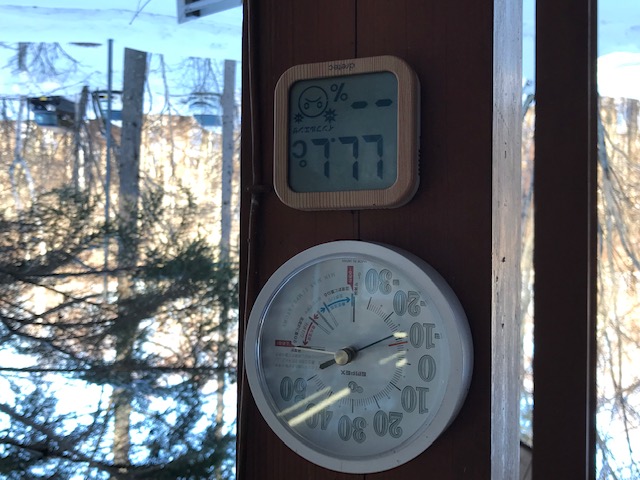 今朝、通勤時、姫木平付近通過する際、自家用車の温度計はここ数年見たことがなかった-16℃を表示していました。事務所の温度計は-14℃でした。雪の量は少な目ですが、キビシイ寒さです。