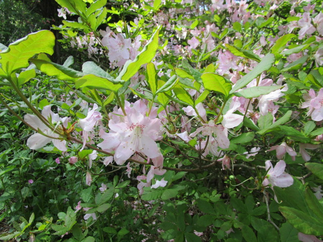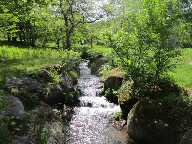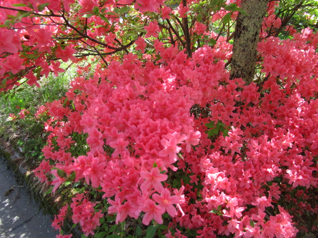 気持ちの良い高原の朝です。女神湖グランドではサッカーの試合が行われ朝から元気のいい声が飛び交っています。事務所前の花壇には早くもレンゲツツジが咲き始めてきました。レンゲツツジは鮮やかなオレンジ色ですが、周辺には薄ピンク色や濃い朱色のツツジも咲いて爽やかな高原のみどり色の中で一際映えています。