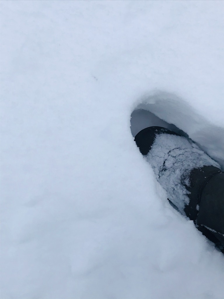 ↓ どのくらい降ったのかということで新雪を踏みしめてみました。