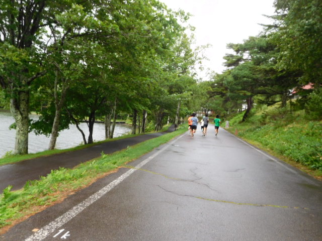 雨の女神湖を撮影するのは本当に久々のような気がします。雨の中を学生が高地トレーニングをしている姿も見られました。