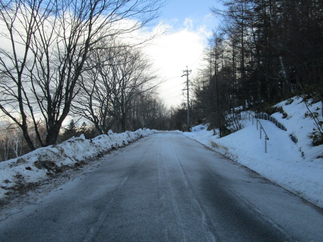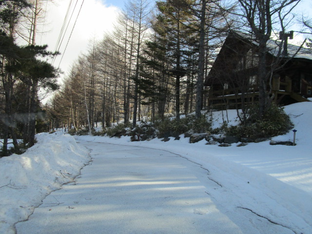 昨日、一昨日は気温が上昇し、こちらでも最高気温が8℃で、外作業をしていたスタッフは、着ていた防寒着を脱ぐほど暖かな陽気でした。しかし今朝は気温がグッと下がりました。昨日まで路面が見えていた別荘地内道路も今朝はツルツル、凸凹状態です。融けたり凍結したりで道路は危険な状態です。車の走行には充分ご注意ください。
