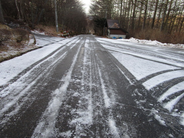 昨夜降った、雪交じりの雨のところ、今朝の冷え込みで別荘地内の道路はツルツル状態でした。既に塩カル車が入っておりました。気温が上がったり下がったり繰り返しておりますので、体調管理には十分お気をつけください。(私も気を付けます)