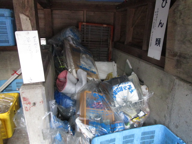 写真を撮りながら、事務所前のごみ庫をちらっと覗いてみました。