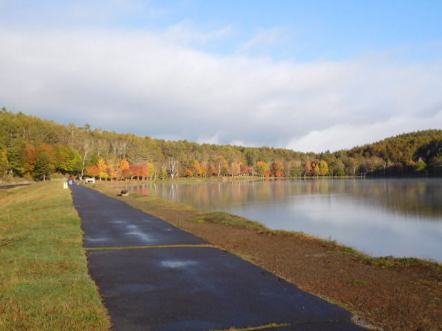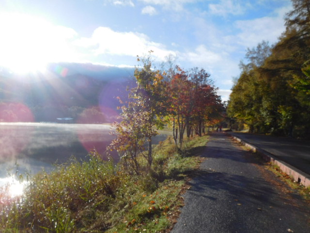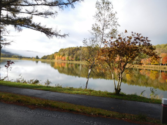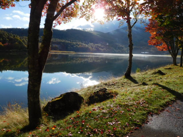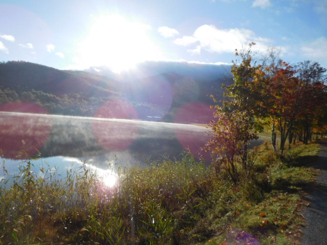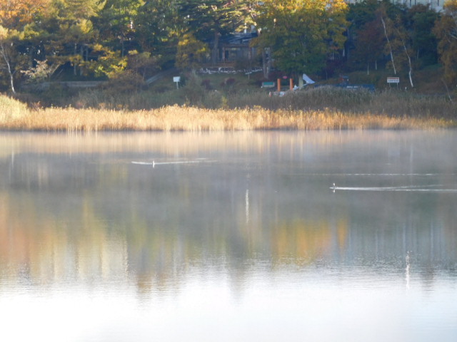 今朝7時30分頃に撮影した女神湖です。ん~この景色、ずっとここでこの景色をみていたぃ~