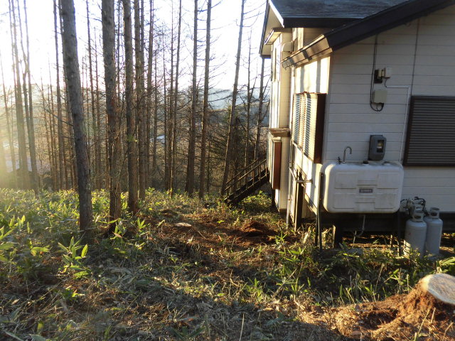 13日(火)~15日、の3日間に渡り行われた伐採作業が完了しました。天気に恵まれ予定通りに無事完了し担当:石合もホッとしていました。作業前と作業後の写真をご覧下さい。とってもすっきりしました。
