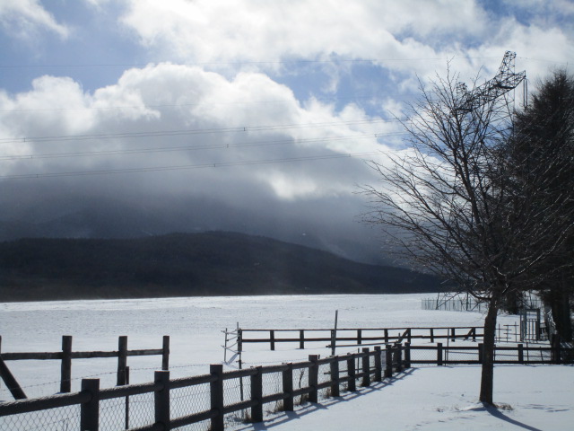 今まで冬期間は営業していなかった第2牧場の「もうもう」ですが、昨年12月24日から営業を始めました。今日もお客様がソフトクリームを片手に浅間山と蓼科山を眺めていました。