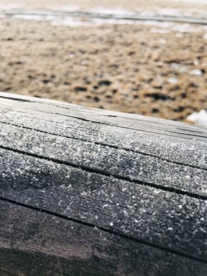 地面や木の柵にも白く結晶が目に見えました。