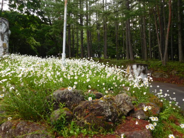 朝、ちょっとだけ晴れ間が見えていましたが、その後は霧に覆われ梅雨らしい天気になってしまいました。写真は今朝、白樺湖から女神湖付近で咲いている「イヌムレスズメ」「ハマナス」「マーガレット」「ワスレナグサ」の花を撮影しました。黄色・ピンク・白・水色 色鮮やかな花々が咲いています。