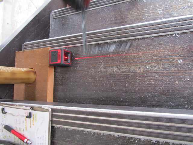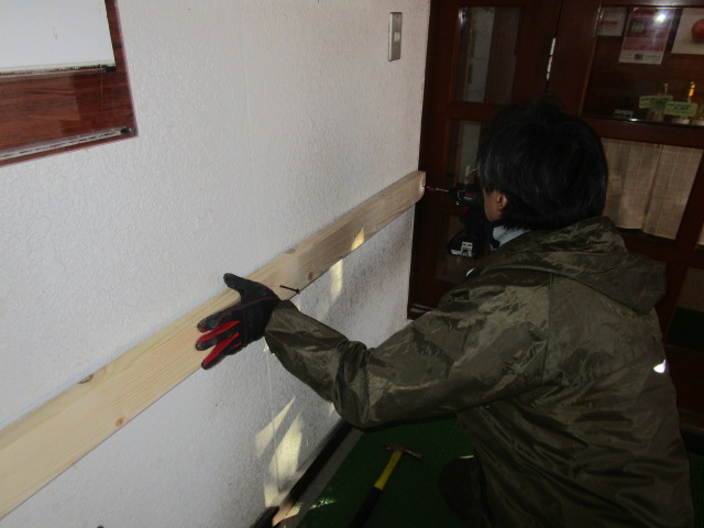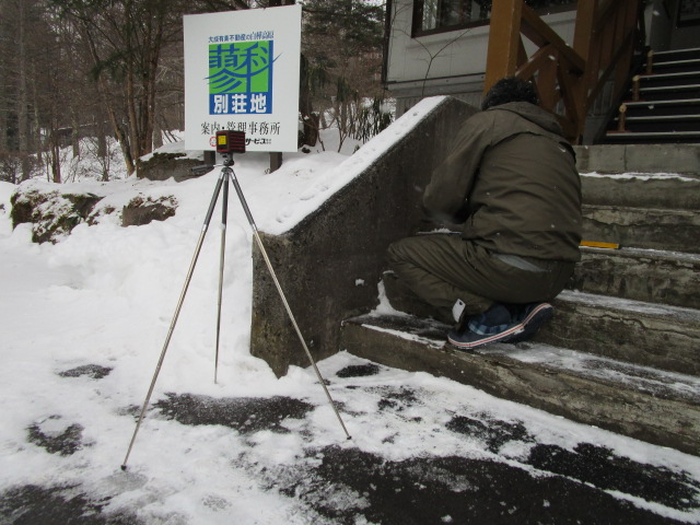 水平と垂直を計測する専門の工具を使って念入りに積算したり、寒い中、合間の時間で少しずつ作業行っています。