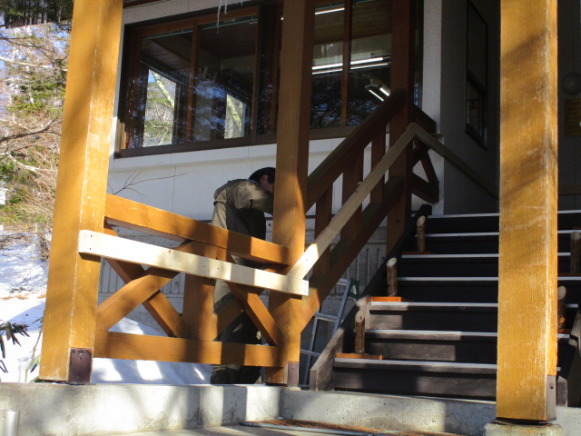 駐車場から事務所に入る階段、皆さまには今まで大変ご不便をお掛けしておりましたが、これからこの部分に手摺りを付ける工事を徐々に進めていきます。