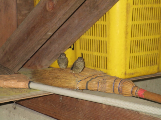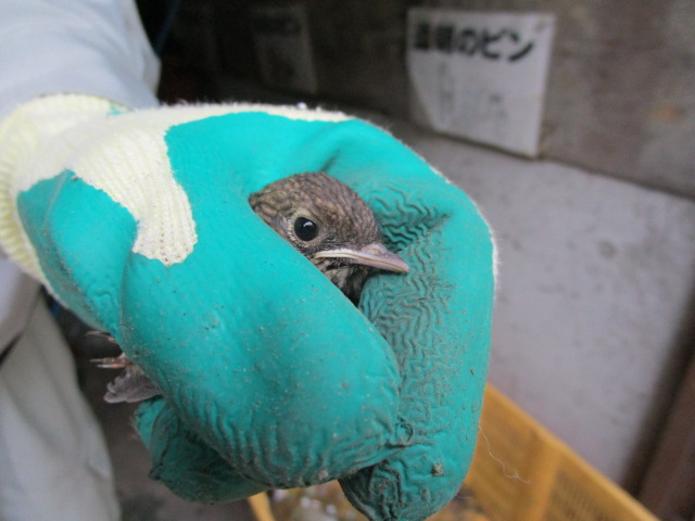 ゴミ庫整理に行った(H・I)が、「ごみ庫の中にスズメがいます!」との事、「ここにはスズメはいないよね?」「何でごみ庫に入った?」「どこから入った?」「早く逃がしてあげて…!」等など、事務所内での会話が飛び交う中、早速見に行きました。一羽だと思っていたら、な・なんと!!4羽もいるではありませんか!スズメでないことは確かですが、鳥の名前がわかりませんが、捕獲網を使って4羽とも全て外に出してあげました。ごみ庫内に巣を作って産まれたのかな?どちらにしても元気でいて欲しいな…。(鳥の名前がお分かりの方は教えていただければ嬉しいです。)