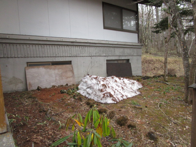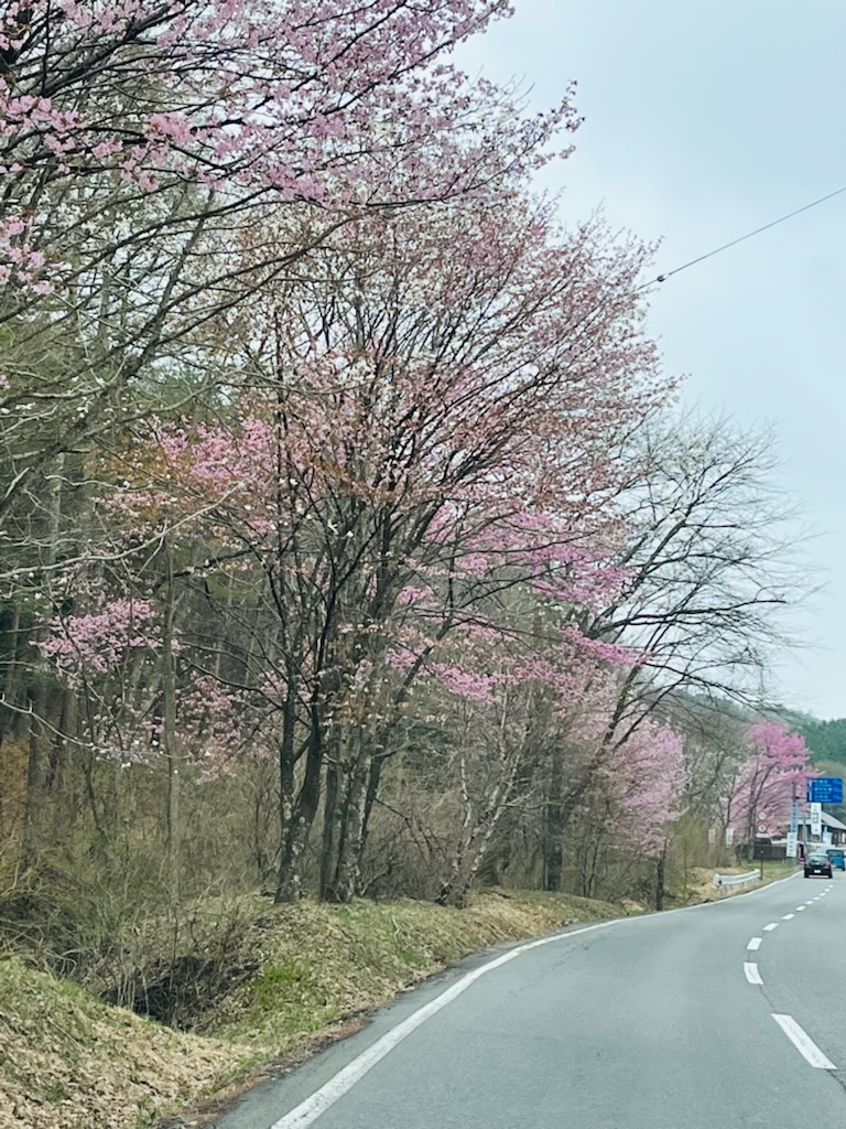 4月中旬以降暖かい日が続いてることもあり、落雪で雪溜まりになっていた場所もあと少しで溶けてなくなりそうです。周辺を見回すとふきのとうが所々に顔を出しています。また、女神湖通りの桜はまだ咲いてきておりませんが、県道40号では、桜やこぶしの花が見頃となっています。ふもとの桜は散ってしまいましたが、ふもとからスノーシェードまでの間でも色とりどりの春らしい景色となってきました。