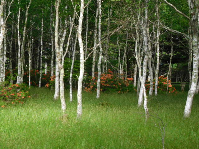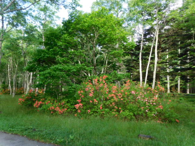 今朝は朝日の丘から、白樺の木とレンゲツツジ、そして蓼科山を撮影しました。レンゲツツジは満開時期を過ぎましたが、雨に濡れた草木の鮮明なグリーン、シラカバのホワイト、そしてレンゲツツジのオレンジが冴えています。蓼科山のふもとに見える建物は4期ロイアルヴィラ蓼科です。