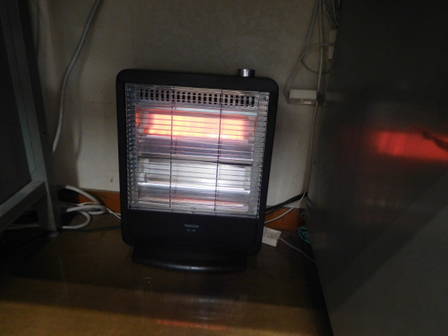 今日は雨の影響もあってか足元が寒いので、電気ストーブ点けちゃった。