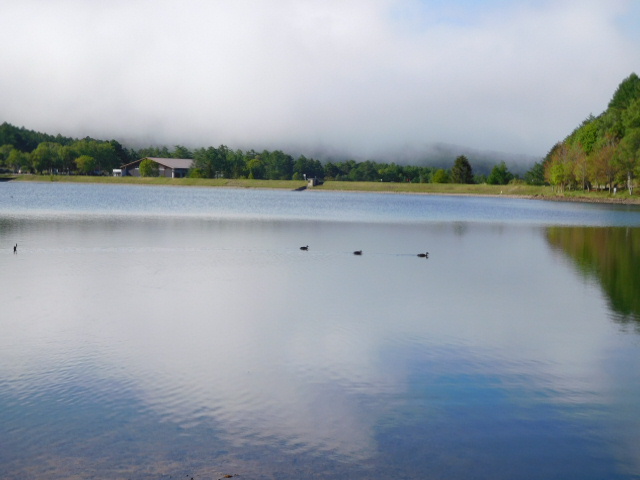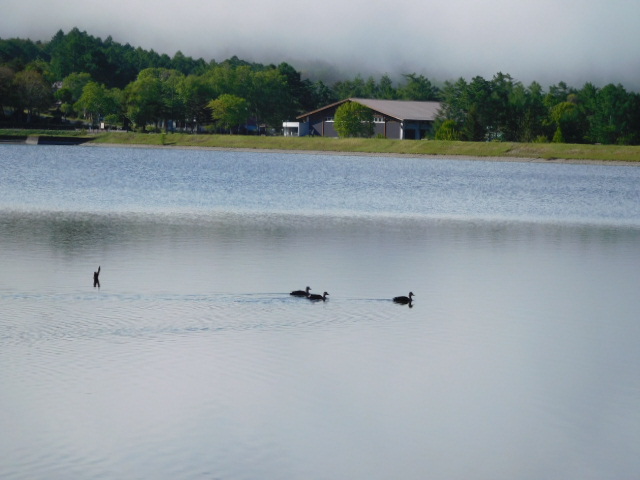 女神湖では悠々と泳ぐカモや魚の姿も・・・今日も一日がんばるぞー