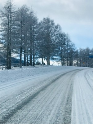 路面状況としては、前回の雪が溶けて氷のように固まった上に今回の雪が積もっております。車で走るにも、歩くにも雪の下の氷で滑りやすくなっている場所がありますので、お気をつけて外出いただければと思います。