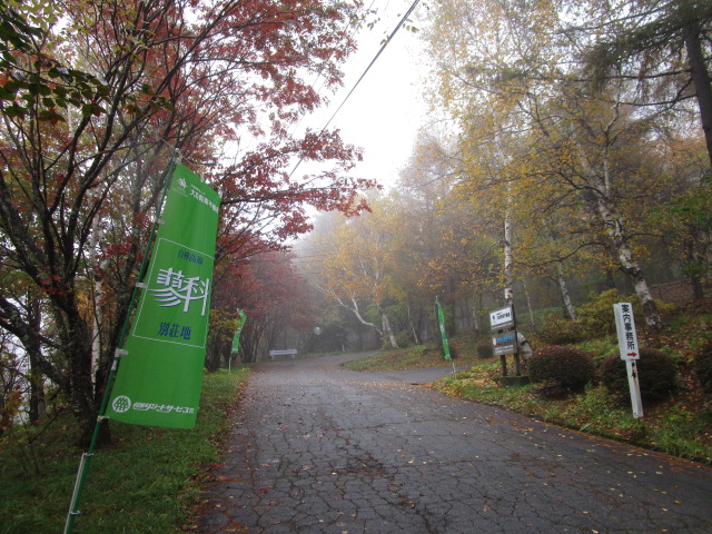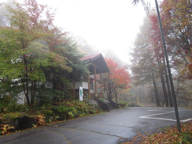 本日は朝から雨で霧も発生! せっかくの紅葉の変化が上手に撮れませんがお許し下さい。天気予報では来週19日頃まで太陽がお目見えしないようです。収穫前の田んぼは、脱穀が出来ず「はぜ掛け」した稲が雨に濡れています。一日も早く晴れて爽やかな秋空になるといいですね・・・