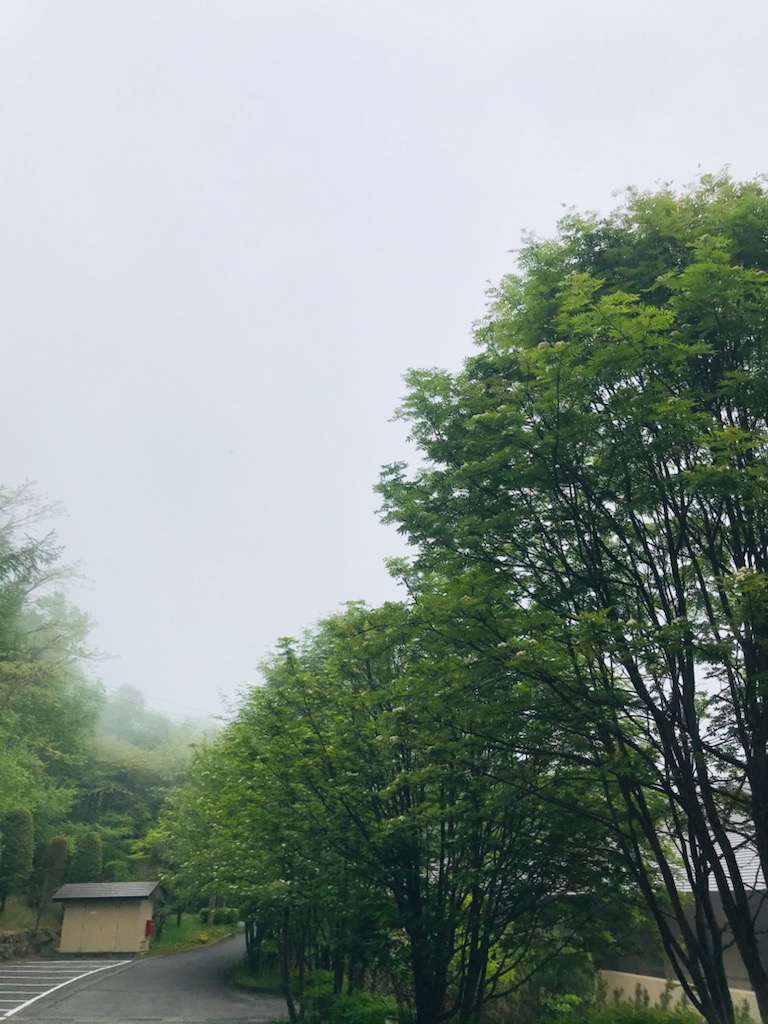昨夜からの雨が一時止み、霧が少し出ていました。弊社も衣更えをしたのですが、ちょっとだとまだ肌寒いです。