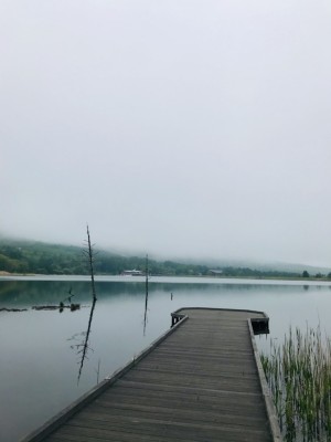 女神湖周辺も霧に囲まれ、山々が隠れてしまっていました。湖上の霧が風で動き、1秒毎に風景を変えていたのも印象的でした。