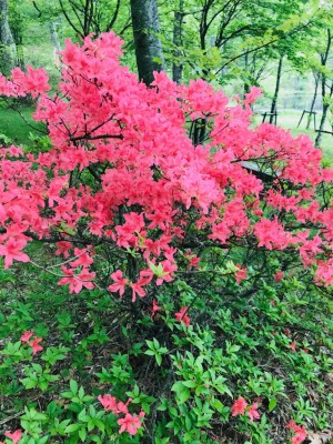 周りを見渡すと、色鮮やかなツツジが目に入りました。近くにはレンゲツツジも咲き始めています。