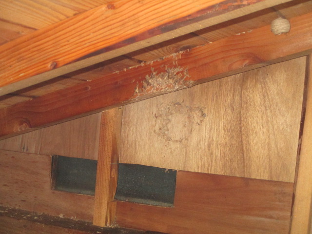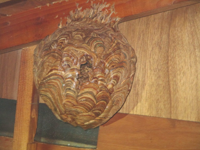 ご覧下さい!!この見事な蜂の巣!!とっても危険な黄色スズメ蜂の巣です。「来荘前点検」にて弊社スタッフが建物の軒隙間から蜂が出入りしているのを発見し、ご来荘前に駆除、撤去することができました。屋根裏に作られた巣は直径30cm程の大きさでした。巣を撤去した後は出入りした箇所をコーキングし完了となります。駆除作業は専門業者にお任せしないと、とっても危険です。発見したら直ちに管理事務所にご連絡下さい。対応させていただきます。