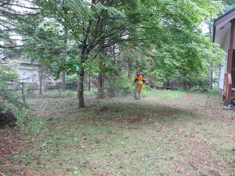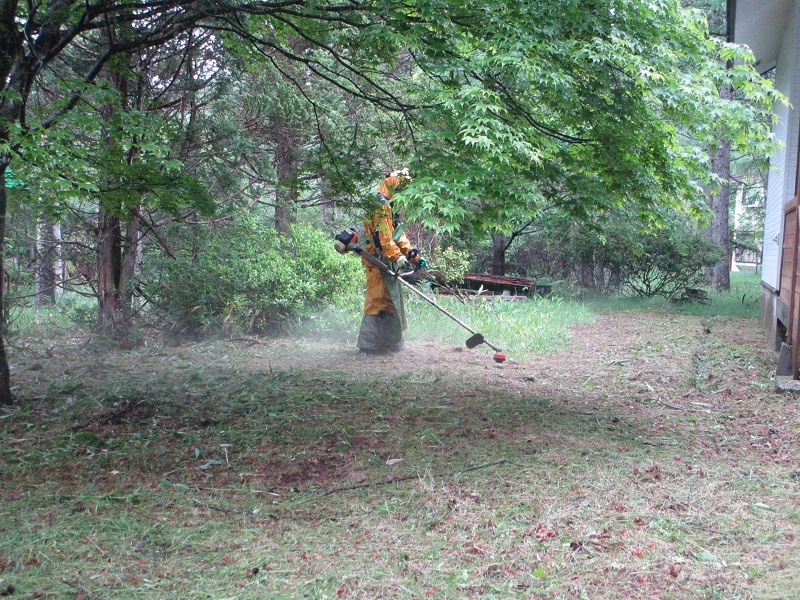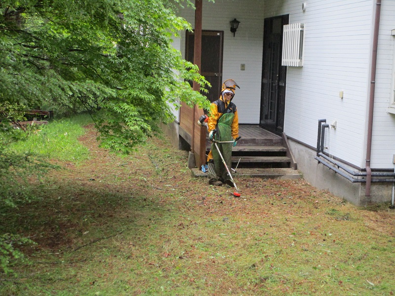 午前中から降ってきた雨。止む気配はありません。こんな雨の日ですが、草刈作業を頑張っているのは当社の草刈り名人”H・I” 。実家がりんご農家の為、学生時代から手伝っており、草刈歴は10年以上!流石に上手です!!作業風景を撮影しているときは私に気がつかず黙々を作業をしていましたが、私の気配を感じたようでこちらを見たときの「満面な笑みを見てください。」・・・草刈作業は孤独で大変な作業です。戸建の敷地内の作業は、木々等の障害物があるため、刈るだけで一日掛かります。特にこんな雨の日は視界や足元が悪いため思ったように捗りませんが、ひたむきに一生懸命作業している姿「う・つ・く・し・い」ですね。