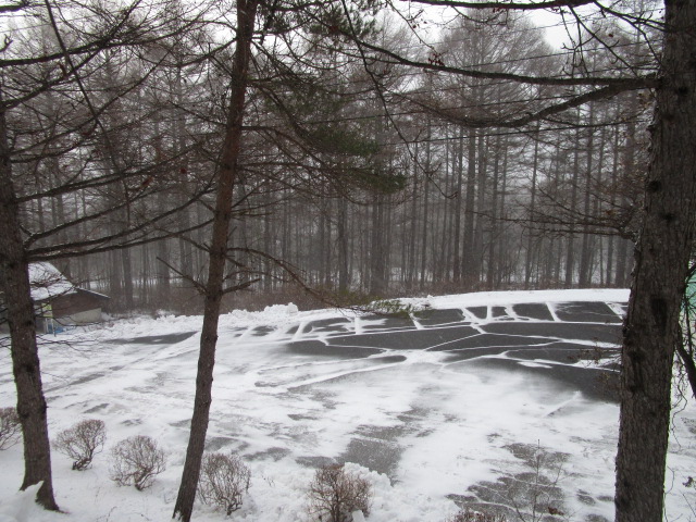 昨日降った雪が解けて気温の低下で凍ってしまい、別荘地内道路状況が悪くなっています。そして今、また雪が降ってきました。天気予報では、明日昼頃までデッカイ雪だるまになっています。雪の下は凍ってツルツルなので、お気をつけください。