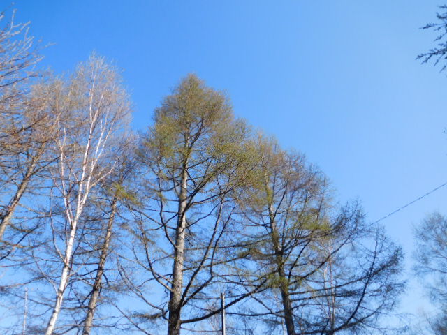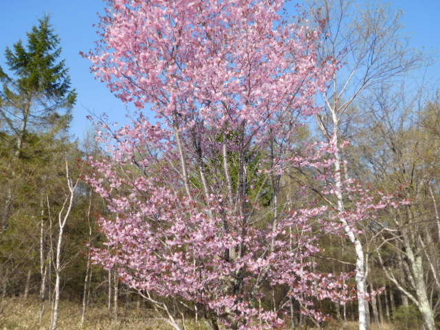 GWに入り、車が多くなってきました。今、山桜やコブシの花が満開で見頃です。また、カラマツやシラカバの芽吹きが始まり高原にも春が来たあ~・・・という感じです。