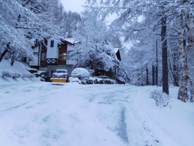 昨日午後から降った雪で、また辺り一面まっ白しろになりました。道路は凍結しています。明日以降、日本海側中心に降雪予報が出ていますので年末年始ご来荘のお客様は気象情報など確認し、お気をつけてお越しください。